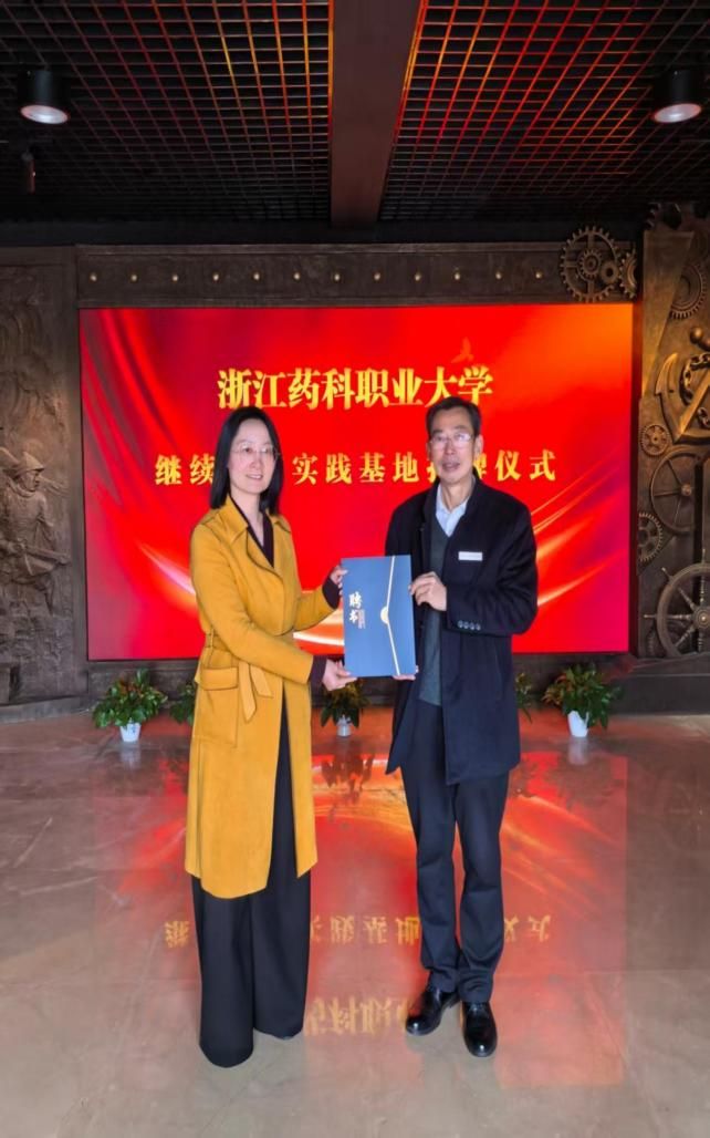 挂牌仪式上,沈忠华副校长代表学校为舟山鸦片战争纪念馆授予“浙江药科职业大学继续教育实践基地”牌匾。随后,学校人事处处长沈燕丽为舟山鸦片战争纪念馆馆长王和平颁发产业教授聘书,聘请其担任我校继续教育学院校外实践导师。